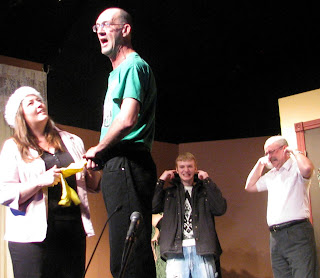 You'll see cast members in the audience if you look hard enough. :-) At the end of the show, we walked up the aisles, singing "We'll Meet Again". People would reach out and shake our hands as we walked by.